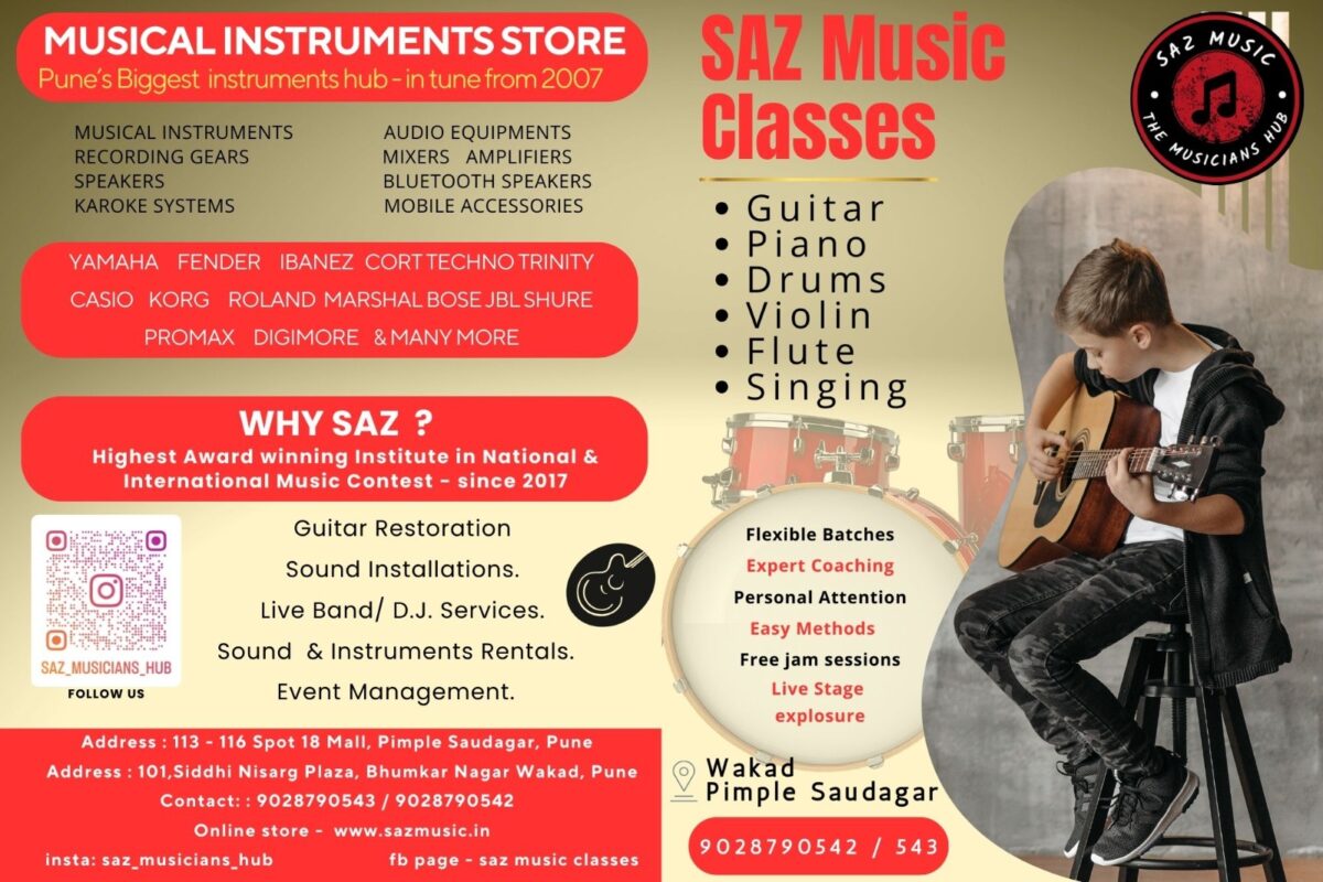 SAZ MUSIC is Pune’s most trusted Music Academy and Instrumental Store — where learning meets passion and every note finds its rhythm.